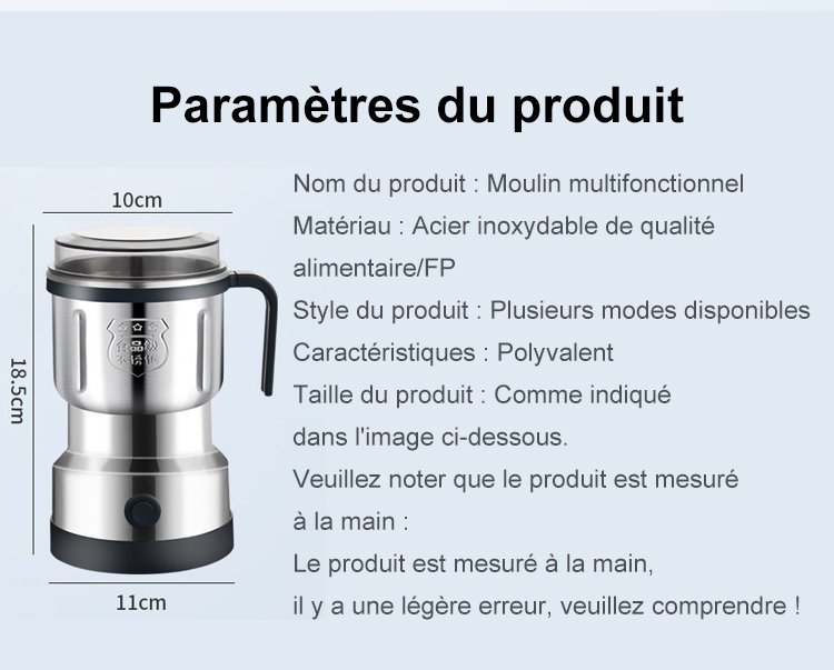 Broyage efficace] [Efficient-Grinding] Moulin électrique multifonctionnel à usage domestique